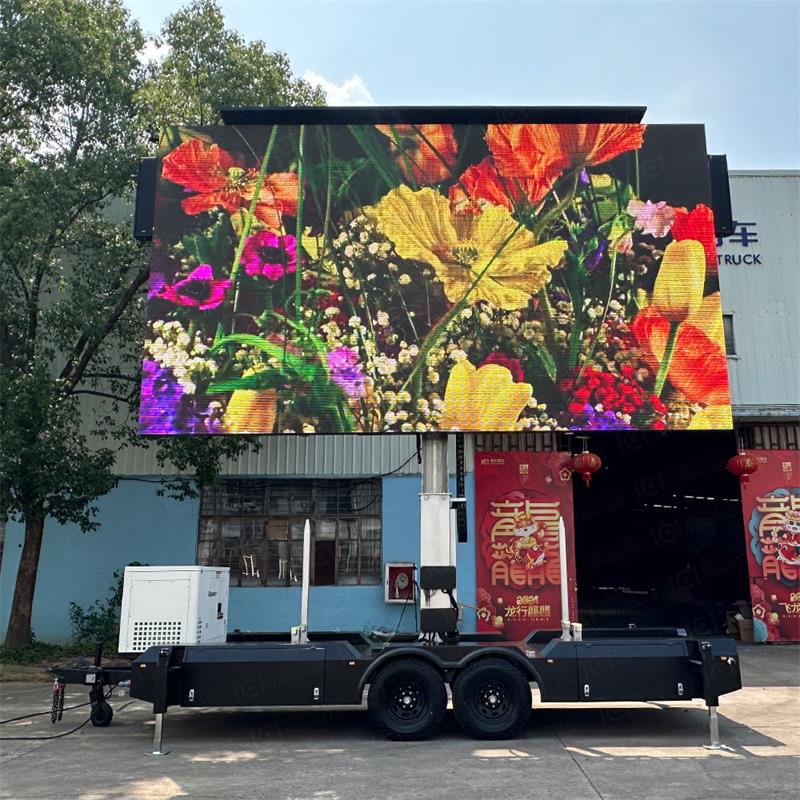 DieMBD-26S PlatformDie mobiele LED-sleepwa van 26 vierkante meter het ook 'n 360-grade rotasiefunksie. Ongeag waar die sleepwa geparkeer is, kan die gebruiker die hoogte en rotasiehoek van die skerm maklik aanpas deur die afstandbeheerknoppie, om te verseker dat die advertensie-inhoud altyd op die kykposisie georiënteer is. Hierdie buigsaamheid verbeter die doeltreffendheid van advertensies, wat besighede in staat stel om verskeie buiteruimtes ten volle te benut vir vertoon.